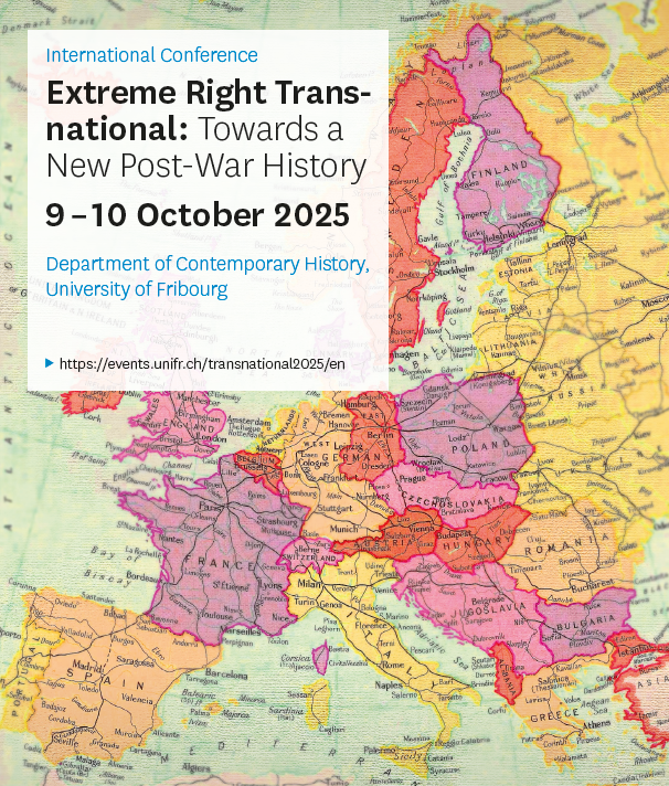The programme for our international conference ‘Extreme Right Transnational: Towards a New Post-War History’ on 9–10 October 2025 at the University of Fribourg is now online. Visit our website and register by 5 October: https://events.unifr.ch/transnational2025/en/